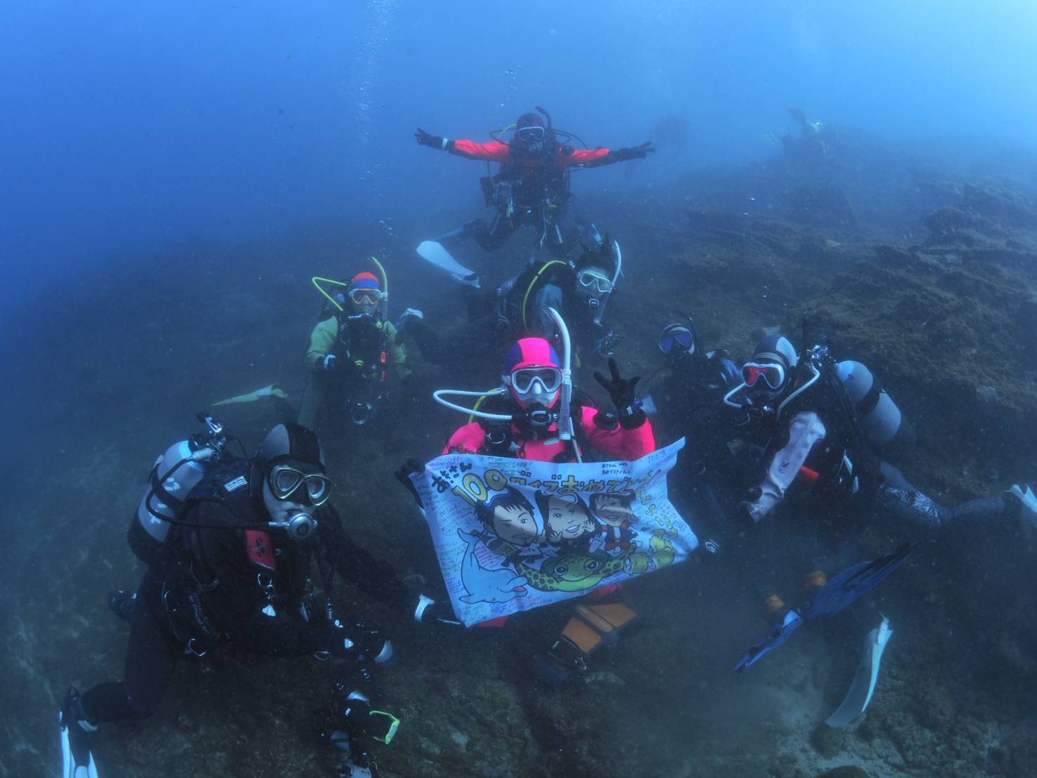三日目は伊東!イサキ、タカベの大群、それを追っ掛ける大型回遊魚のアタックは迫力満点。砂地に沈んでた門松で最後は全員で記念写真。