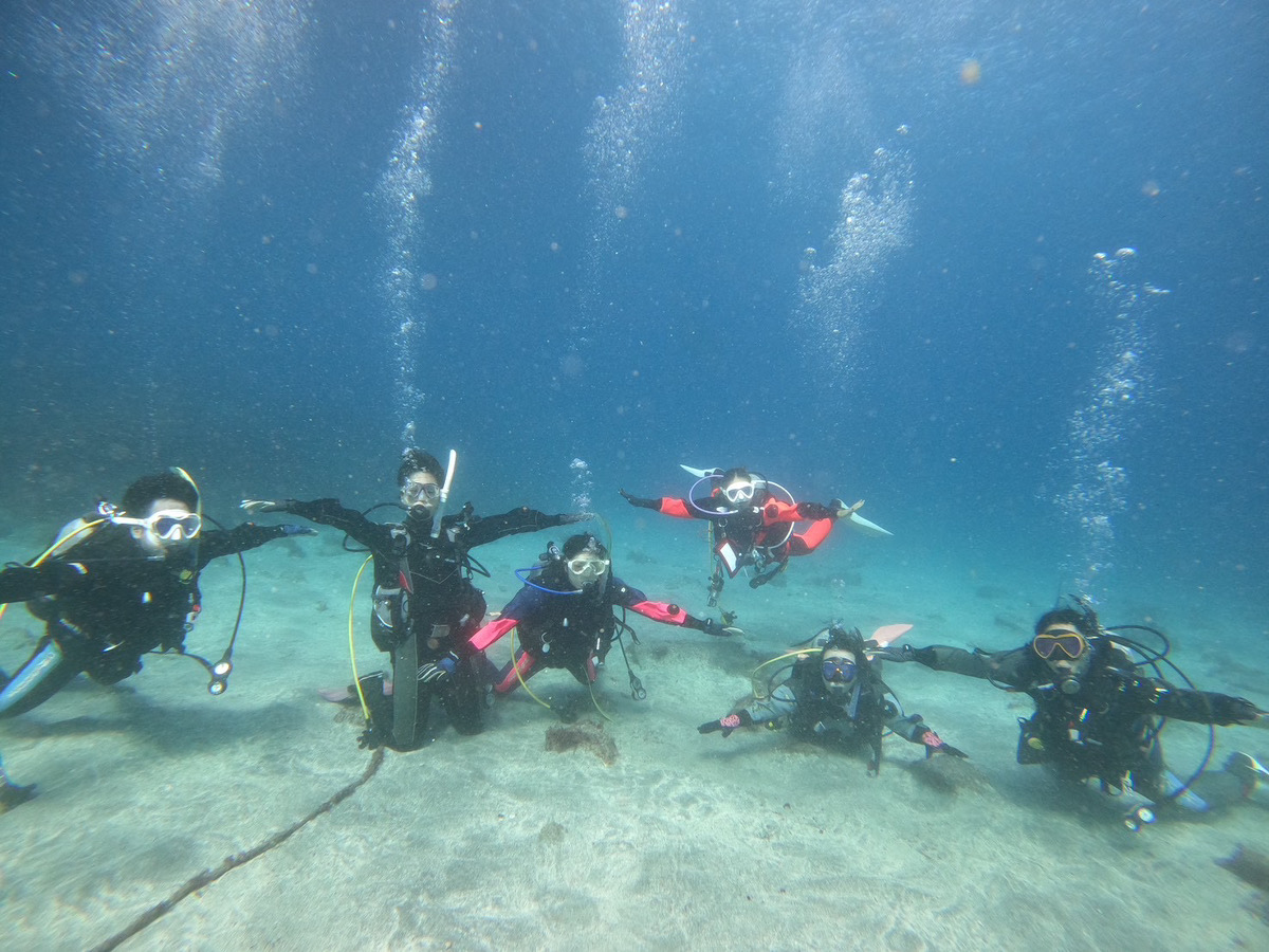 自己紹介でダイバーネームを発表しあうのですが、なんと!仲良く全員【○○ティ】♪ 一気に仲が深まりました:)