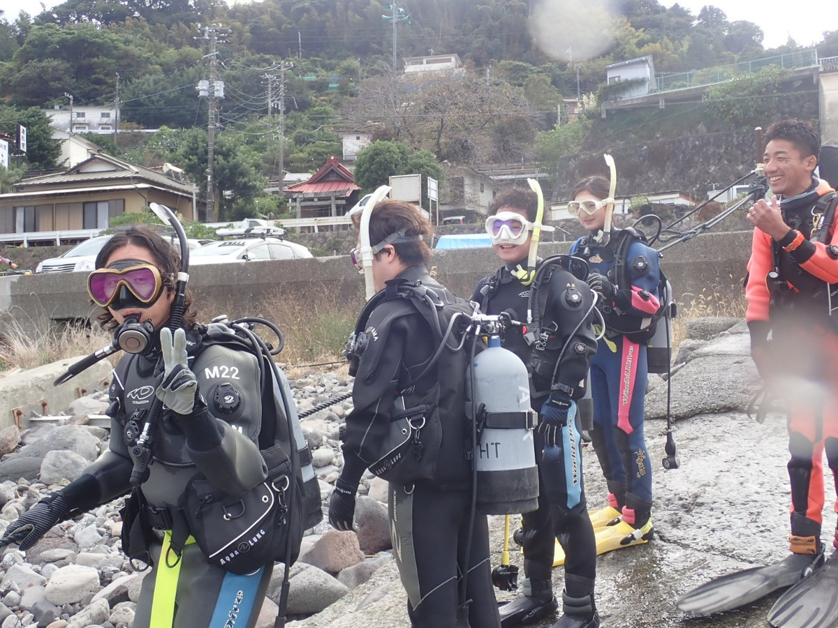 初めての海洋ダイビングのかたはドキドキワクワクでしたが、水温が気温よりもあったかく透視度もよかったので、ソラスズメダイやアオリイカに見守られながらみんなで頑張りました!
